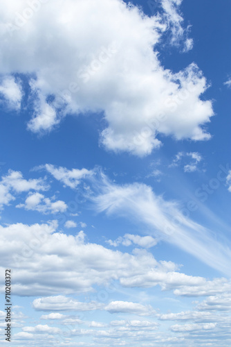 © Viktor Iden, Fototapeta premium Many white fluffy clouds against beautiful blue sky background