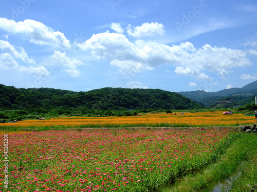 © Kit Leong, Fototapeta premium Many Zinnia elegans blossom