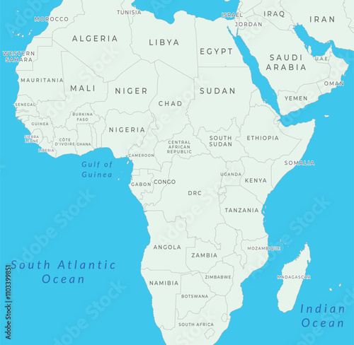 © sarfaraz, Fototapeta premium Map of Africa with countries borders and labeling