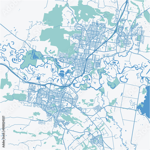 © Stef, Obraz premium Map of Albury-Wodonga in Australia in a professional blue style. Contains layered vector with roads water, parks, etc.