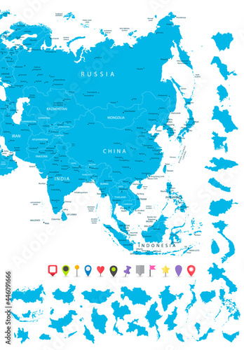 © Iryna, Obraz premium Map of Asia with it's states and flat map pointers
