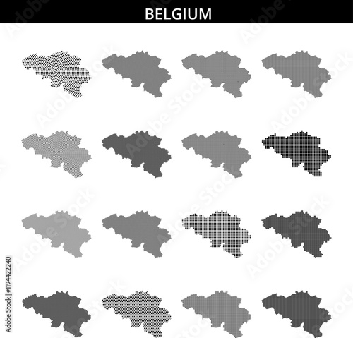 © puruan, Obraz premium Map of Belgium with dotted pattern highlighting its geographical features