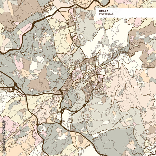 © Knut Hebstreit, Obraz premium Map of Braga Portugal, art map print template