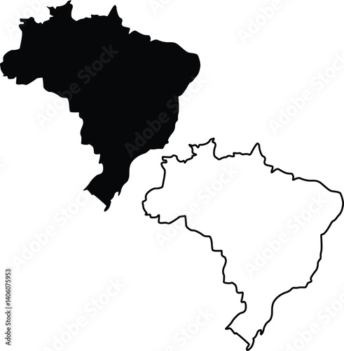 Obraz premium Map of Brazil Silhouette Flat and Outline Design