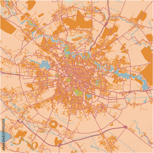 © Stef, Fototapeta premium Map of Bucharest in Romania in a sandy theme. Contains layered vector with roads water, parks, etc.