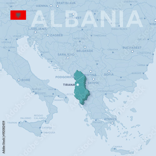 © snyde, Obraz premium Map of cities and roads in Albania.