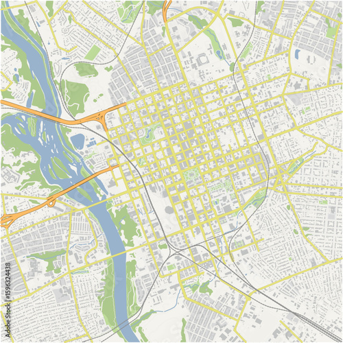 © Stef, Fototapeta premium Map of Columbia Center in South Carolina in a normal road map style. Contains layered vector with roads water, parks, etc.