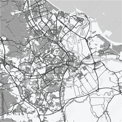 Naklejka premium Map of Gdansk in Poland in grayscale. Contains layered vector with roads water, parks, etc.
