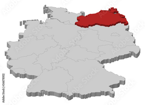 Naklejka premium Map of Germany, Mecklenburg-Vorpommern highlighted