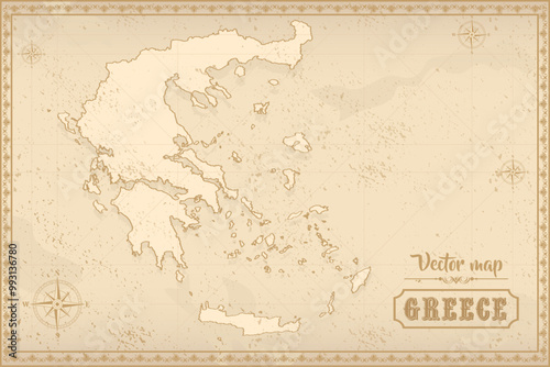 Fototapeta premium Map of Greece in the old style, brown graphics in retro fantasy style