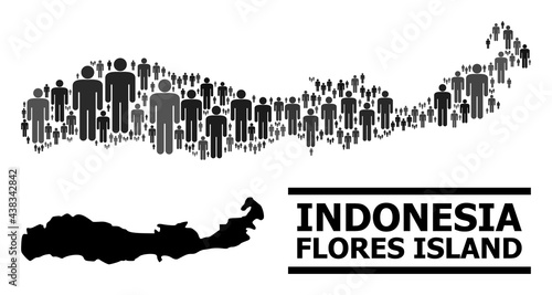Fototapeta premium Map of Indonesia - Flores Island for national applications. Vector demographics mosaic. Concept map of Indonesia - Flores Island composed of guy pictograms.