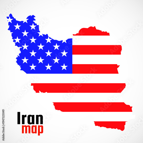 Obraz premium Map of Iran with the usa flag inside isolated on white background