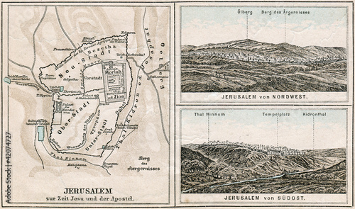 © Sergey Kohl, Naklejka premium Map of Jerusalem and surroundings. The Bible. Germany, 1895