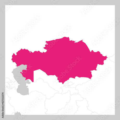 Obraz premium Map of Kazakhstan pink highlighted with neighbor countries