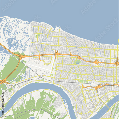 © Stef, Obraz premium Map of Kenner in Louisiana in a normal road map style. Contains layered vector with roads water, parks, etc.