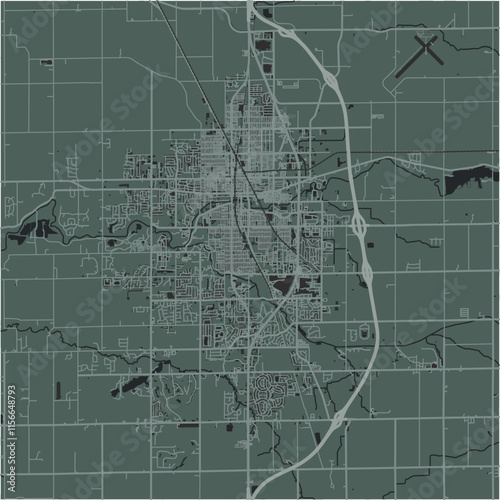© Stef, Fototapeta premium Map of Kokomo in Indiana in a smooth dark style. Contains layered vector with roads water, parks, etc.