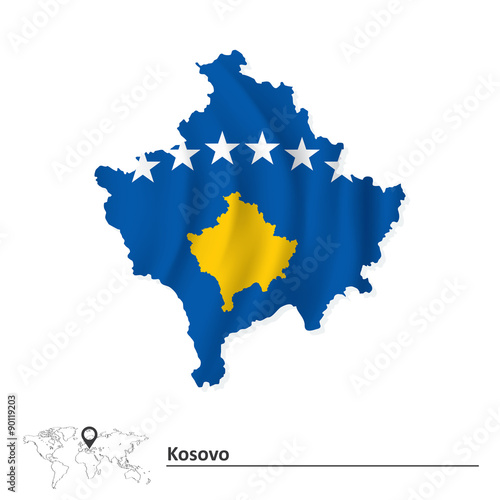 Obraz premium Map of Kosovo with flag
