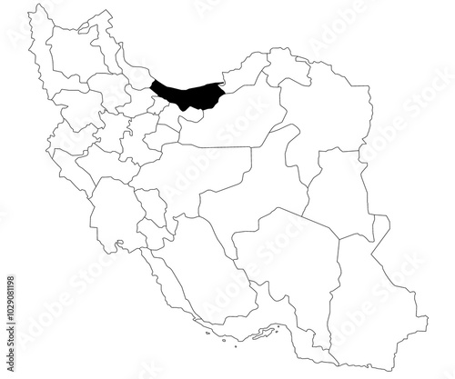 © Akhtar Ansari , Fototapeta premium Map of mazandaran province in Iran country on white background. Single province map highlighted by black colour on Iran map. Middle East, ir