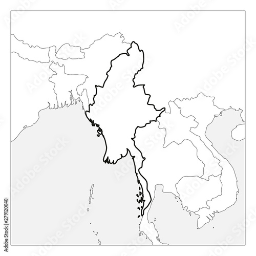 Obraz premium Map of Myanmar black thick outline highlighted with neighbor countries