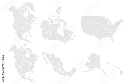 © K, Fototapeta premium Map of North America, isolated on white background. Vector EPS.10