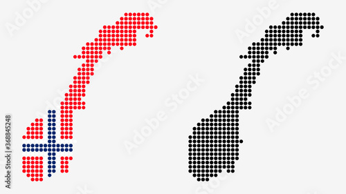 Fototapeta premium Map of Norway, in dotted style. One version includes the flag, the other is simply black. Vector Graphic.