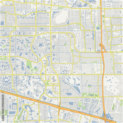 © Stef, Fototapeta premium Map of Plantation in Florida in a normal road map style. Contains layered vector with roads water, parks, etc.