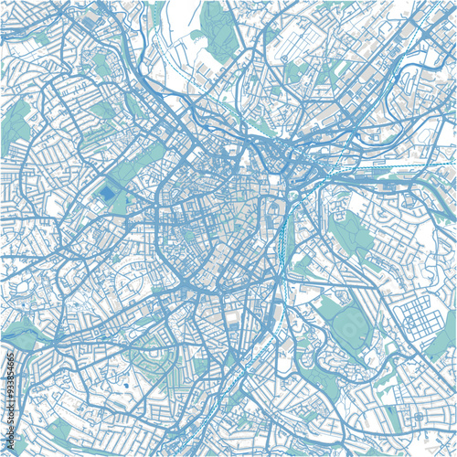 © Stef, Fototapeta premium Map of Sheffield in United Kingdom in blue. Contains layered vector with roads water, parks, etc.