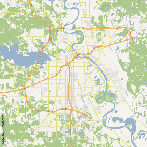 © Stef, Fototapeta premium Map of Shreveport in Louisiana in a normal road map style. Contains layered vector with roads water, parks, etc.
