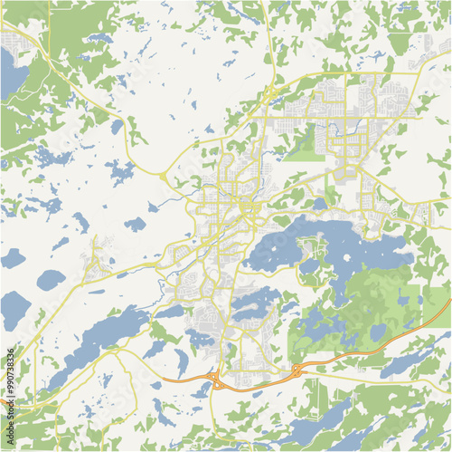 © Stef, Fototapeta premium Map of Sudbury in Canada in a normal road map style. Contains layered vector with roads water, parks, etc.