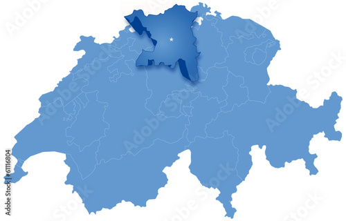 Fototapeta premium Map of Switzerland where Aargau is pulled out