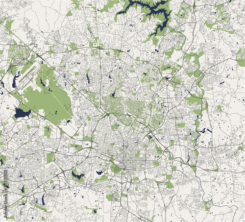© tish11, Fototapeta premium map of the city of Raleigh, USA