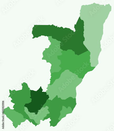 Fototapeta premium Map of the Republic of the Congo with regions. Just a simple country border map with region division. Green color palette. Plain Republic of the Congo shape with administrative division.