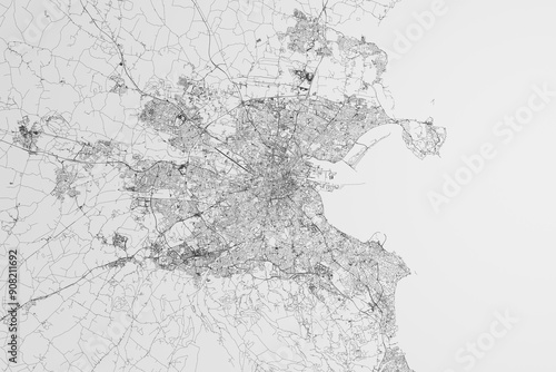 © Hairem, Fototapeta premium Map of the streets of Dublin (Ireland) on white background. 3d render, illustration