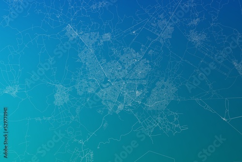 © Hairem, Obraz premium Map of the streets of Gaborone (Botswana) made with white lines on greenish blue gradient background. 3d render, illustration