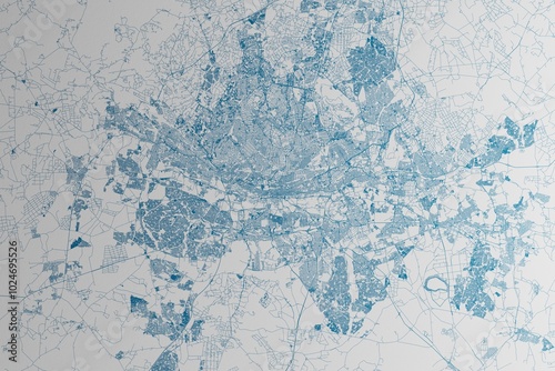 Fototapeta premium Map of the streets of Johannesburg (South Africa) made with blue lines on white paper. 3d render, illustration