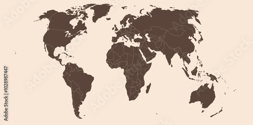 © Tetiana Kubara, Naklejka premium Map of the world. Solid silhouettes continents on a beige background. Banner, background for website or print. Vector graphics.