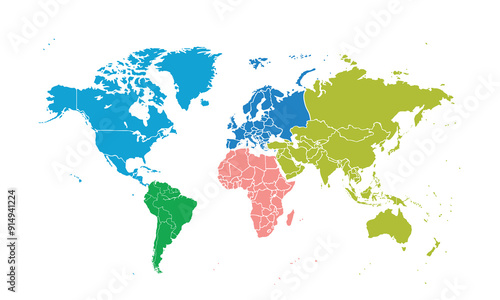 © K, Naklejka premium Map of the world with individual modern colorful for website layouts,background, education, precise, customizable, Travel worldwide,map silhouette backdrop,earth geography,political,reports.