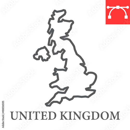 Naklejka premium Map of United Kingdom line icon, country and geography, Great Britain map...