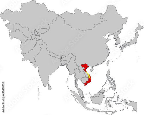 © Milos, Fototapeta premium Map of Vietnam with national flag on Gray map of Asia