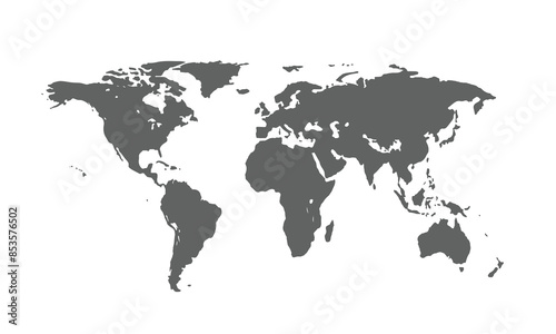 Fototapeta premium Map of world isolated on white background. for website layouts, background, education, precise, customizable, Travel worldwide, map silhouette backdrop, earth geography, political, reports.