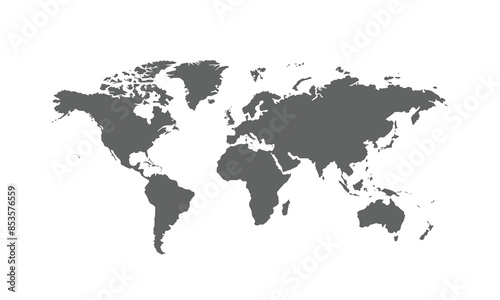 Fototapeta premium Map of world isolated on white background. for website layouts, background, education, precise, customizable, Travel worldwide, map silhouette backdrop, earth geography, political, reports.
