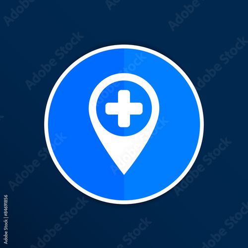 © moleks, Obraz premium Map Pointer Icon With Cross, Hospital, First Aid Sign