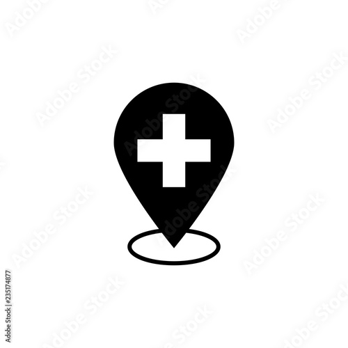 © OLGA, Obraz premium map pointer icon with cross hospital symbol position