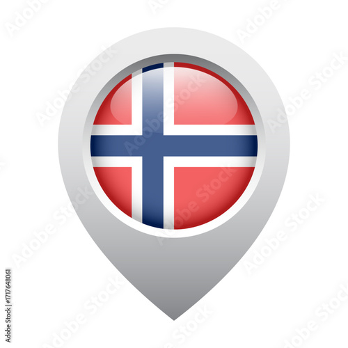© elenvd, Obraz premium map pointer icon with glossy round flag of Norway