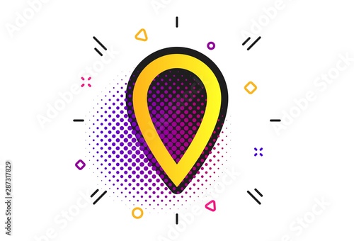 Fototapeta premium Map pointer sign icon. Halftone dots pattern. Location marker symbol. Classic...