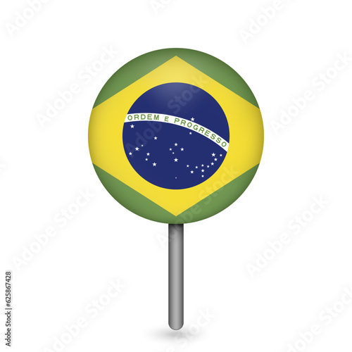 Fototapeta premium Map pointer with contry Brazil. Brazil flag. Vector illustration.
