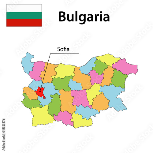 © rb_octo, Obraz premium Map with borders and flag of Bulgaria.