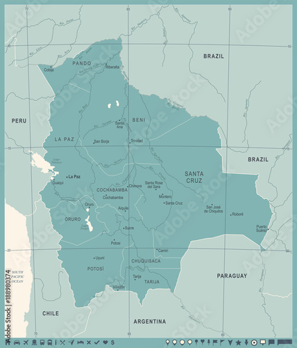 © Porcupen, Fototapeta premium Mapa Boliwii - Vintage Szczegółowa ilustracja wektorowa