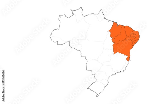 © Stockchi, Obraz premium Mapa de la Región Nordeste de Brasil