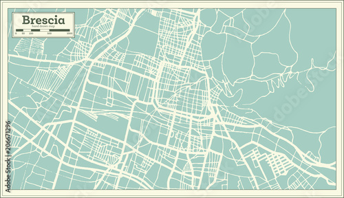 © BooblGum, Obraz premium Mapa miasta Brescia we Włoszech w stylu retro. Mapa przeglądowa.